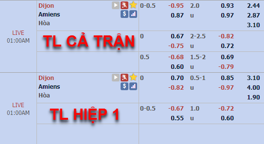 Trên sàn giao dịch châu Á, tỷ lệ chính của trận đấu vẫn được giữ ở mức chấp 1/4 của đội chủ nhà Dijon nhưng điểm ăn bên phía Amiens đã được điều chỉnh giảm so với thời điểm chúng tôi cập nhật chiều nay. Ở bên phía tỷ lệ tổng bàn thắng cả trận cũng diễn biến tương tự, kèo chính 2 hoà vẫn được giữ nhưng điểm ăn cửa ít bàn thắng đang có xu hướng giảm điểm.
