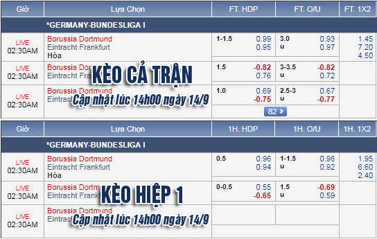 Dortmund -1 1/4 cả trận