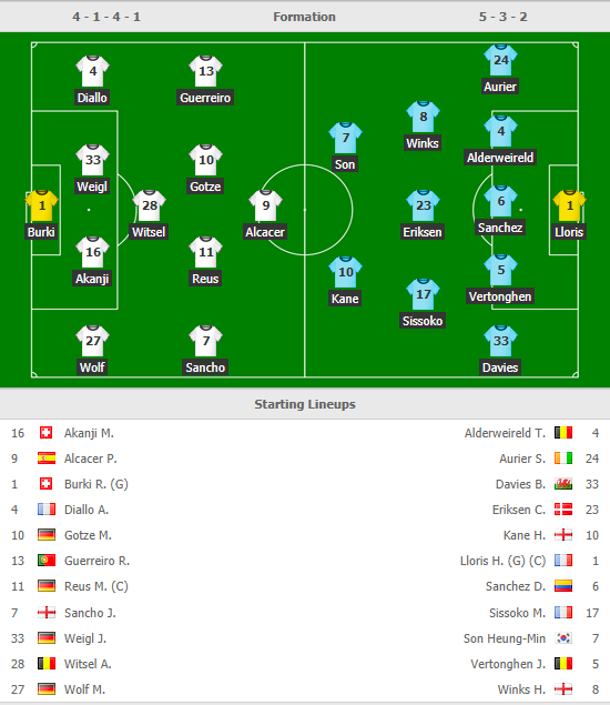 Trận đấu: Dortmund vs Tottenham