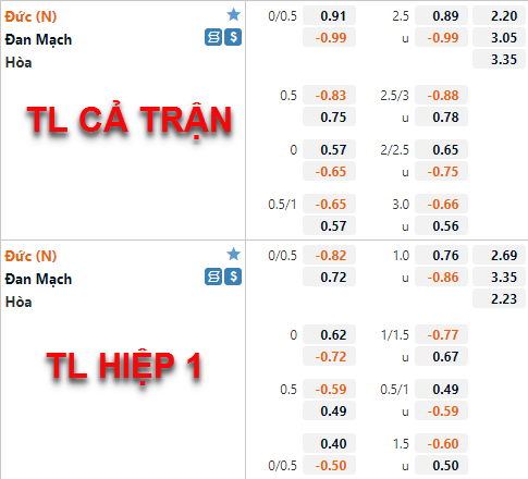 Tỷ lệ chấp của ĐT Đức có xu hướng giảm điểm trong thời gian vừa qua. Hiện tại cỗ xe tăng Đức chỉ còn tỷ lệ chấp chính là 1/4 thay cho mốc 1/2 ở lần chúng tôi cập nhật trước đây. Trong khi đó tỷ lệ tài xỉu của trận đấu có xu hướng tăng điểm, mốc 2 1/2 vẫn là mốc chính của trận đấu nhưng điểm ăn của cửa tài đã được điều chỉnh giảm.
