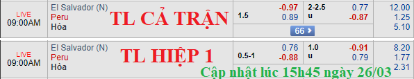 AEGoal.net chốt kèo trực tiếp trận El Salvador vs Peru diễn ra lúc 08h00 ngày 27/03 sau khi dựa trên tính toán, chuyển động về kèo châu Á và đội hình ra sân của 2 đội.