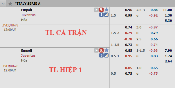 AEGoal.net chốt kèo trực tiếp trận Empoli vs Juventus sau khi dựa trên tính toán, chuyển động về kèo châu Á và đội hình ra sân của 2 đội.
