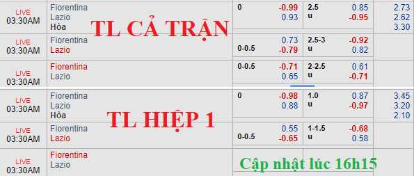 CHỐT KÈO TRỰC TIẾP trận Fiorentina vs Lazio (02h30)