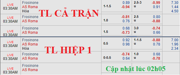 * Ở 3 lần cuối cùng chạm trán Frosinone tại giải VĐQG Italia, AS Roma đã toàn thắng cả về chuyên môn lẫn kèo châu Á.