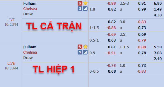 THAM KHẢO: Fulham +1 1/4 cả trận