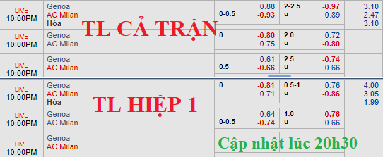 Tuy nhiên, nhìn nhận khách quan thì chuyên gia AEGoal cho rằng cửa xỉu mới là lựa chọn sáng giá hơn ở trận này. AC Milan không thể có sự phục vụ của Higuain nên khả năng khoan phá của đội khách sẽ bị suy giảm. Trong khi đó, Genoa cũng không mạnh ở mặt trận tấn công với những nhân tố già nua như Pandev.
