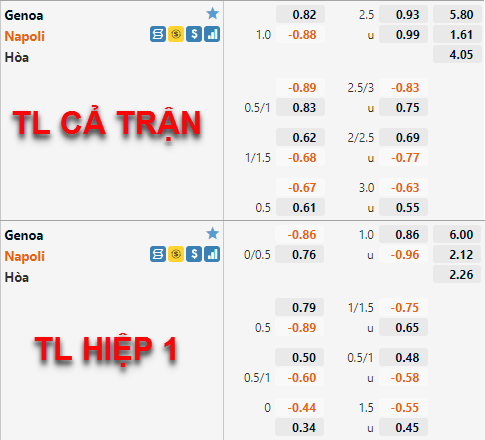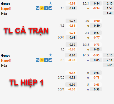 Những diễn biến trên sàn giao dịch châu Á đem lại những dấu hiệu không tốt cho lựa chọn cửa trên và tài trận đấu này. Nhưng theo chúng tôi hiện tại lực lượng của Napoli tương đối tốt, họ cũng có phong độ không tồi ở giải đoạn chuẩn bị trước mùa giải. Quá khứ đối đầu cũng đang ủng hộ đội khách khi họ có 3 chiến thắng liên tiếp trước Genoa. Trong khi đó Genoa không có phong độ tốt khi thủng lưới tới 9 lần ở 3 trận đấu gần nhất. Rất khó để đội chủ nhà có thể tạo nên bất ngờ trận này