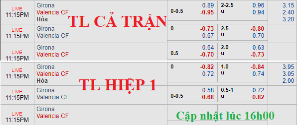 CHỐT KÈO TRỰC TIẾP trận Girona vs Valencia (22h15)