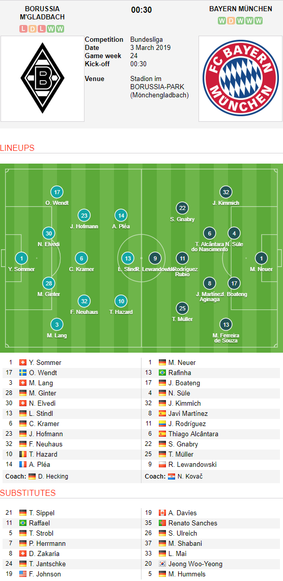 CHỐT KÈO TRỰC TIẾP trận Gladbach vs Bayern Munich (00h30)
