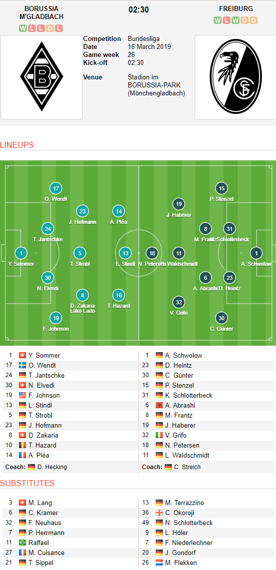 + Gladbach vs Freiburg (Vòng 26 giải VĐQG Đức, Bundesliga)