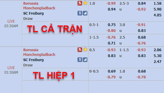 Tỷ lệ của trận đấu vẫn đang được nhà cái châu Á giữ ở mức chấp 1 hòa của Gladbach. Mức điểm ăn bên phía đội khách có xu hướng tăng ở thời điểm hiện tại. Điều này cho thấy giới đầu tư đang nghiêng về phán đoán Gladbach có một chiến thắng dễ dàng trận này. Mặc dù Gladbach có kết quả không tốt thời gian gần đây với 3 trận thua liên tiêp trên sân nhà nhưng với lực lượng và phong độ của Freiburg ở thời điểm hiện tại thì rất khó để đội khách có thể tạo nên bất ngờ.