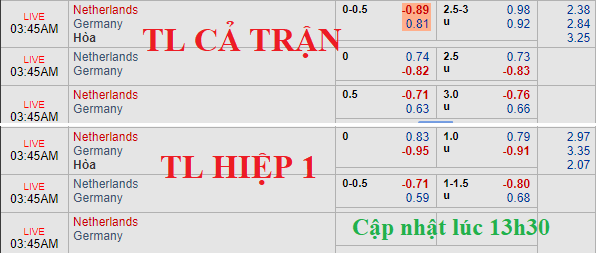 CHỐT KÈO TRỰC TIẾP trận Hà Lan vs Đức (02h45)
