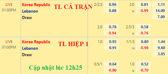 Hàn Quốc vẫn chấp 2 1/4 như thời điểm mở kèo nhưng lợi nhuận cho họ đã tăng lên đáng kể, trong khi tài xỉu 3 hòa lại có điểm ăn giảm ở cửa tài. Trên thực tế, Lebanon vẫn cần nỗ lực để cạnh tranh với các đội nhì bảng khác. Vậy nên không dễ để Hàn Quốc thắng đậm trận này.