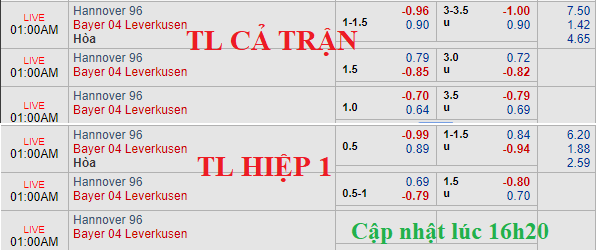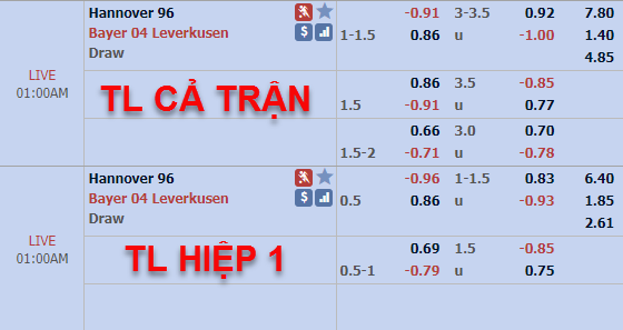 Tham khảo: Leverkusen -1/2 Hiệp 1