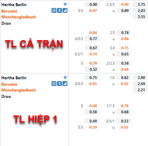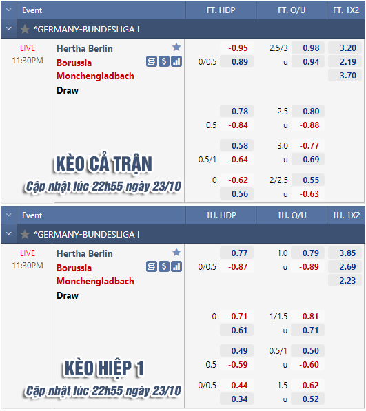 * Chốt kèo trận Hertha Berlin vs Monchengladbach (23h30 ngày 23/10)