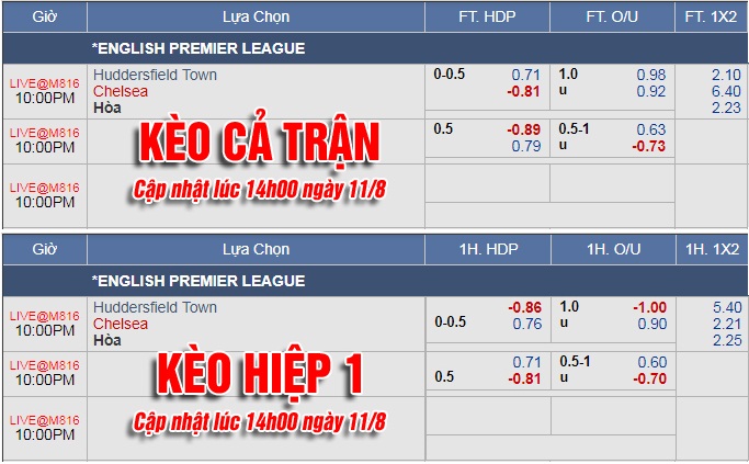 AEGoal.net chốt kèo trực tiếp trận Huddersfield vs Chelsea sau khi dựa trên tính toán, chuyển động về kèo châu Á và đội hình ra sân của 2 đội.