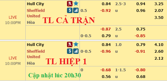 Mức chấp hòa là cột mốc lần đầu tiên Sheffield Utd có trong lịch sử khi đến làm khách trước Hull City. Chủ nhà không còn nhiều động lực trong khi các vị khách đang khát khao điểm số để giữ vững vị trí thứ 2. Các vị khách cũng tung vào sân đội hình mạnh nhất, và đó là lý do nên tin vào họ.