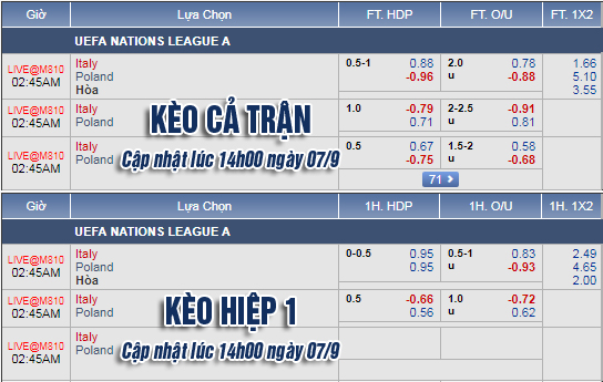 CHỐT KÈO trực tiếp trận Italia vs Ba Lan, 01h45 ngày 08/9: Cửa trên bứt phá