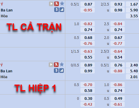Ở thời điểm hiện tại tỷ lệ chấp của ĐT Italia vẫn được nhà cái châu Á duy trì ở mức 3/4 như thời điểm chúng tôi cập nhật trước đây và điểm ăn hai cửa cũng gần như không có thay đổi nào so với trước đây. Bên phía tỷ lệ tài xỉu mốc 2 1/4 vẫn được duy trì là mốc chính của trận đấu nhưng điểm ăn của cửa tài đã được điều chỉnh giảm nhẹ.