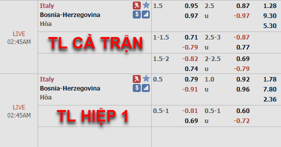 Tham khảo: Italia -1/2 hiệp 1