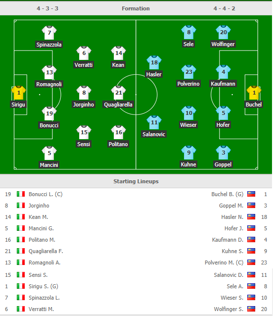 Trận này HLV Mancini sử dụng nhiều nhân tố khác so với màn đụng độ với Phần Lan cách đây vài ngày, nhưng ĐT áo màu thiên thanh vẫn đá với sơ đồ 4-3-3. Trong khi đó, Liechtenstein dù yếu hơn rất nhiều nhưng họ vẫn chơi 4-4-2 mà không tử thủ với 5 hậu vệ như nhiều đội bóng khác. Bởi vậy, khả năng các vị khách nhận kết cục bi thảm là rất cao.