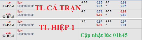 Italia tiếp tục nhận được sự tin tưởng từ phần đông giới đầu tư. Kèo chấp 4 1/2 của họ lúc 18h00 ngày 26/03 gia tăng lên thành 4 3/4 trước giờ bóng lăn chừng 1 tiếng. Trong khi mức handicap biến động như vậy thì mốc tài xỉu 5 hòa lại được giữ nguyên, có chăng là lợi nhuận cho cửa tài giảm vài giá nhưng không đáng kể.