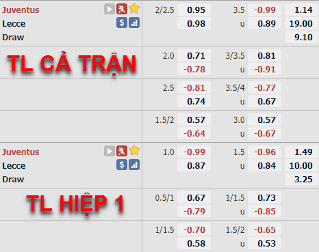 Mặc dù Juventus vẫn tung ra đội hình mạnh nhất với cặp tấn công chất lượng cao Dybala và Ronaldo nhưng họ lại có chiều hướng giảm nhẹ trên sàn giao dịch châu Á. Theo đó, tỷ lệ chấp 2 1/4 đã bị kéo xuống bỏ khá sâu cho lựa chọn cửa trên.