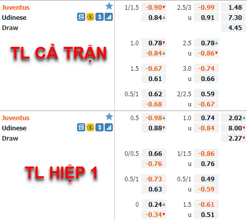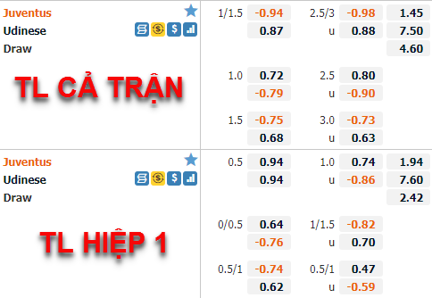 Tỷ lệ chấp chính của Juventus vẫn đang được nhà cái giữ ở mức 1 1/4 như thời điểm chúng tôi cập nhật trước đây, điểm ăn của cửa trên đã được điều chỉnh tăng nhưng không quá nhiều. Ở tỷ lệ tài xỉu cũng có diễn biến tương tự khi mốc 2 3/4 đang là mốc chính của trận đấu và cũng không có nhiều biến động về giá.
