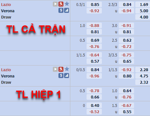 Với đầy đủ những cái tên chất lượng nhất trong đội hình như Immobile Caicedo, Milinkovic-Savic,... Lazio đang tỏ ra hoàn toàn áp đảo so với Verona. Và trên sàn giao dịch châu Á, thầy trò HLV Simone Inzaghi cũng đang tạo ra sự vượt trội với mức kèo -3/4 cùng thang điểm ăn không quá chênh lệch.