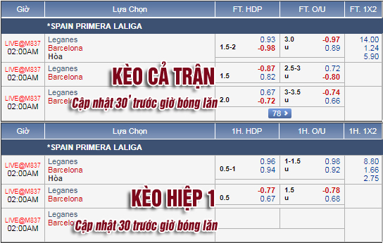 * Chốt kèo trận Leganes vs Barcelona (01h00)