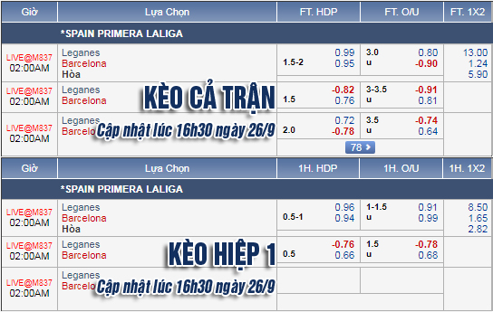 AEGoal.net chốt kèo trực tiếp trận Leganes vs Barcelona sau khi dựa trên tính toán, chuyển động về kèo châu Á và đội hình ra sân của 2 đội.