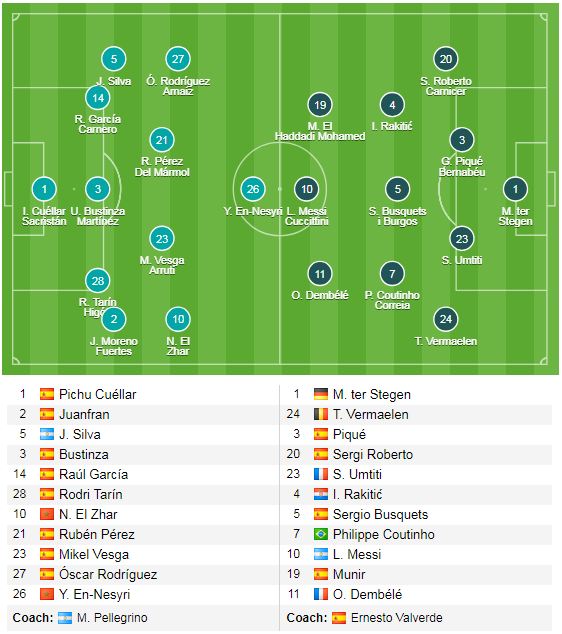 Barca (4-3-3): Ter Stegen; Alba, Umtiti, Pique, Roberto; Busquets, Rakitic, Coutinho; Demble, Messi, Suarez.