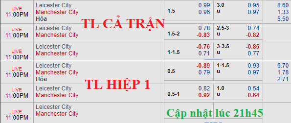 So với thời điểm khớp lệnh lúc 16h00 chiều nay, tỷ lệ chính không có biến động đáng kể khi Man City vẫn chấp 1 1/2, có chăng là điểm ăn cho cửa trên giảm đôi chút. Ở mốc tài xỉu, mức 3 hòa cũng được giữ nguyên nhưng lợi nhuận cho cửa tài từ mốc bỏ về cân bằng.