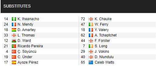 - Leicester City: Praet chấn thương; Vardy, Maddison, Ricardo Pereira và Under không sung sức.
