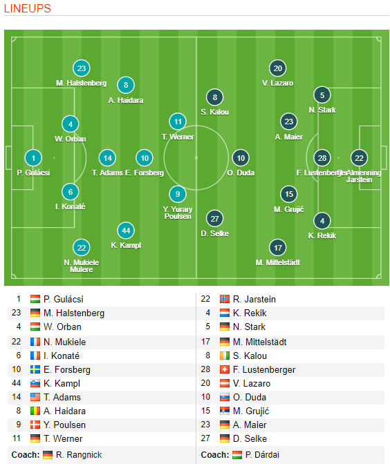 RB Leipzig: Vắng Dayot Upamecano và Lukas Klostermann vì chấn thương.