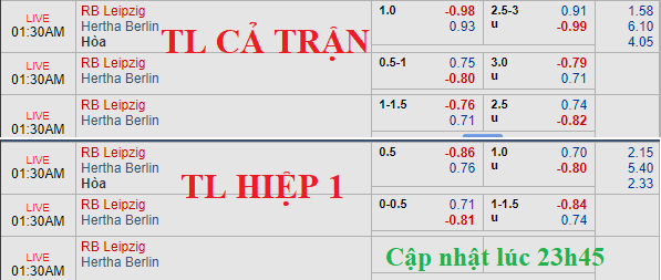 AEGoal.net chốt kèo trực tiếp trận RB Leipzig vs Hertha Berlin diễn ra lúc 0h30 ngày 31/3 sau khi dựa trên tính toán, chuyển động về kèo châu Á và đội hình ra sân của 2 đội.