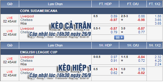 * Chốt kèo trận Liverpool vs Chelsea (01h45)