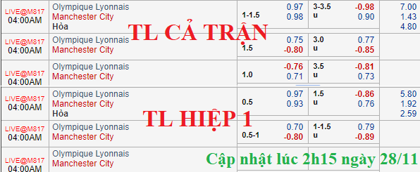 AEGoal.net chốt kèo trực tiếp trận Lyon vs Man City sau khi dựa trên tính toán, chuyển động về kèo châu Á và đội hình ra sân của 2 đội.