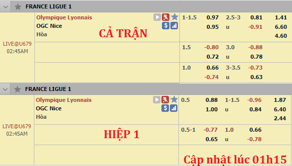 Chốt kèo trận Lyon vs Nice (01h45)