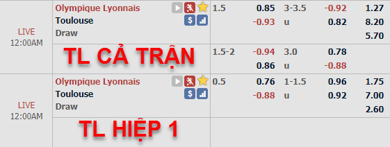 - Toulouse toàn thua 4 trận làm khách gần đây trên sân của Lyon cả về tỷ số và kèo châu Á.