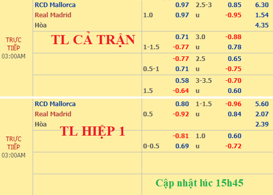 CHỐT KÈO TRỰC TIẾP trận Mallorca vs Real Madrid (02h00)