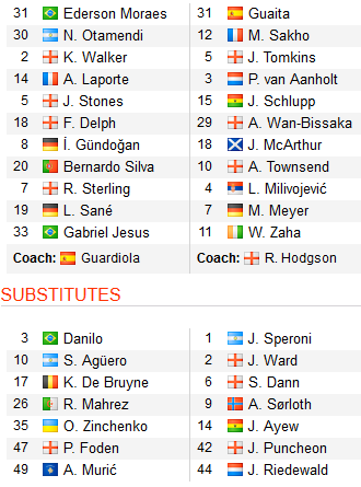 Để có đánh giá chính xác về khả năng vượt kèo, Man City về lý thuyết vẫn để lại nhiều điểm tựa khi tung vào sân hàng loạt hảo thủ đang có phong độ cao như Sane, Sterling, B Silva. Trong khi đó, đội bóng thành London cũng sử dụng lực lượng tốt nhất của họ gồm Milivojevic, Townsend và đặc biệt tiền đạo Zaha.