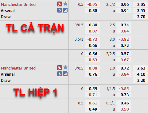 * Chốt kèo trận Man Utd vs Arsenal (23h30 ngày 1/11)