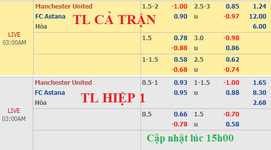 * Chốt kèo trận Man Utd vs Astana (02h00)