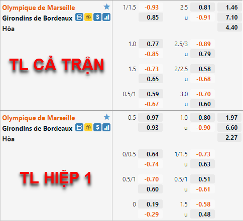 Tham khảo: Marseille -1/2 Hiệp 1