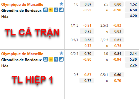Nhưng điều chỉnh của nhà cái châu Á trên sàn giao dịch đang đem lại dấu hiệu tốt cho lựa chọn cửa trên trận đấu này. Marseille có phong rất ổn định từ giai đoán chuẩn bị trước mùa giải cho tới nay trong khi Bordeaux lại thể hiện một hoàn toàn trái ngược, với phong độ hiện tại thì rất khó để Bordeaux có thể tạo ra khó khăn cho các đội chủ nhà vòng đấu này. Quá khứ đối đầu cũng là điểm tựa tinh thần tốt cho các cầu thủ Marseille khi họ thắng cả 3 lần tiếp đón Bordeaux gần nhất.