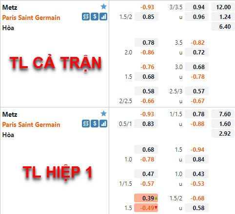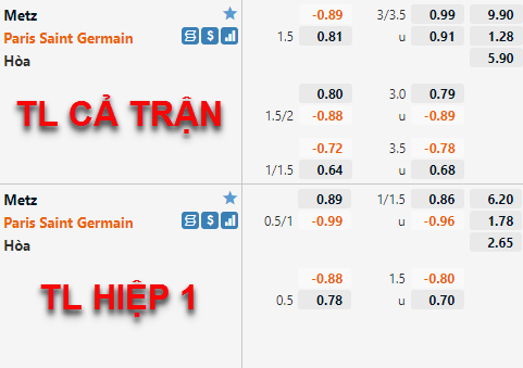 Có thể thấy giới đầu tư trên thị trường đang hơi nghiêng về dự đoán PSG sẽ vượt kèo trong trận đấu này. Rõ ràng có sự chênh lệch quá lớn ở trận đấu này, PSG vượt trội về đẳng cấp cũng nhưng phong độ. Trong khi Metz đứng cuối BXH với thành tích tốt nhất là 3 trận hoà từ đầu mùa giải, với hàng thủ thủng lưới tới 8 lần 3 trận đầu gần nhất thì Metz có thể tạo ra khó khăn cho các cầu thủ khách.