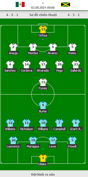 AEGoal chốt kèo bóng đá trực tiếp trận Mexico vs Jamaica diễn ra lúc 09h00 ngày 3/9 trong khuôn khổ vòng loại World Cup 2022 sau khi dựa trên tính toán, chuyển động về kèo châu Á và đội hình ra sân của 2 đội.