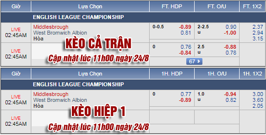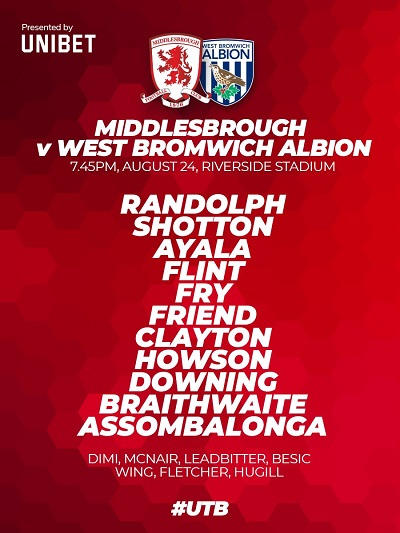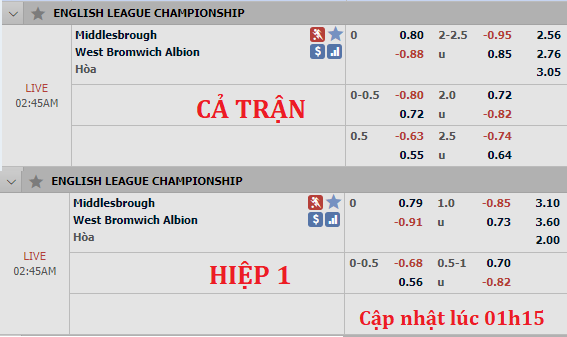 Chốt kèo Middlesbrough vs West Brom (01h45)