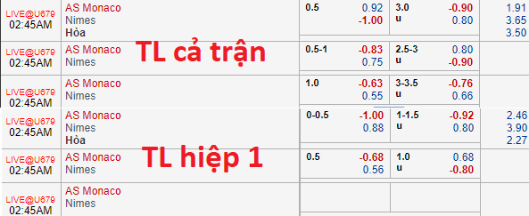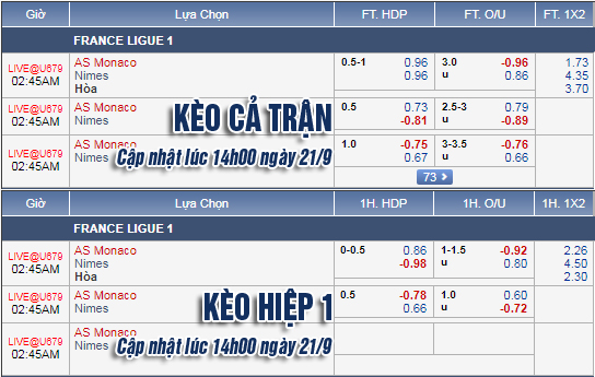 So với thời điểm phiên giao dịch lúc 14h00 chiều ngày 21/9 thì tỷ lệ chấp của Monaco đã giảm từ 3/4 về còn 1/2, thậm chí điểm ăn cho cửa trên của họ tiếp tục có xu hướng bỏ sâu hơn qua thời gian. Trong khi đó, mốc tài xỉu cũng giảm từ mức 3 hòa về còn 2 3/4.